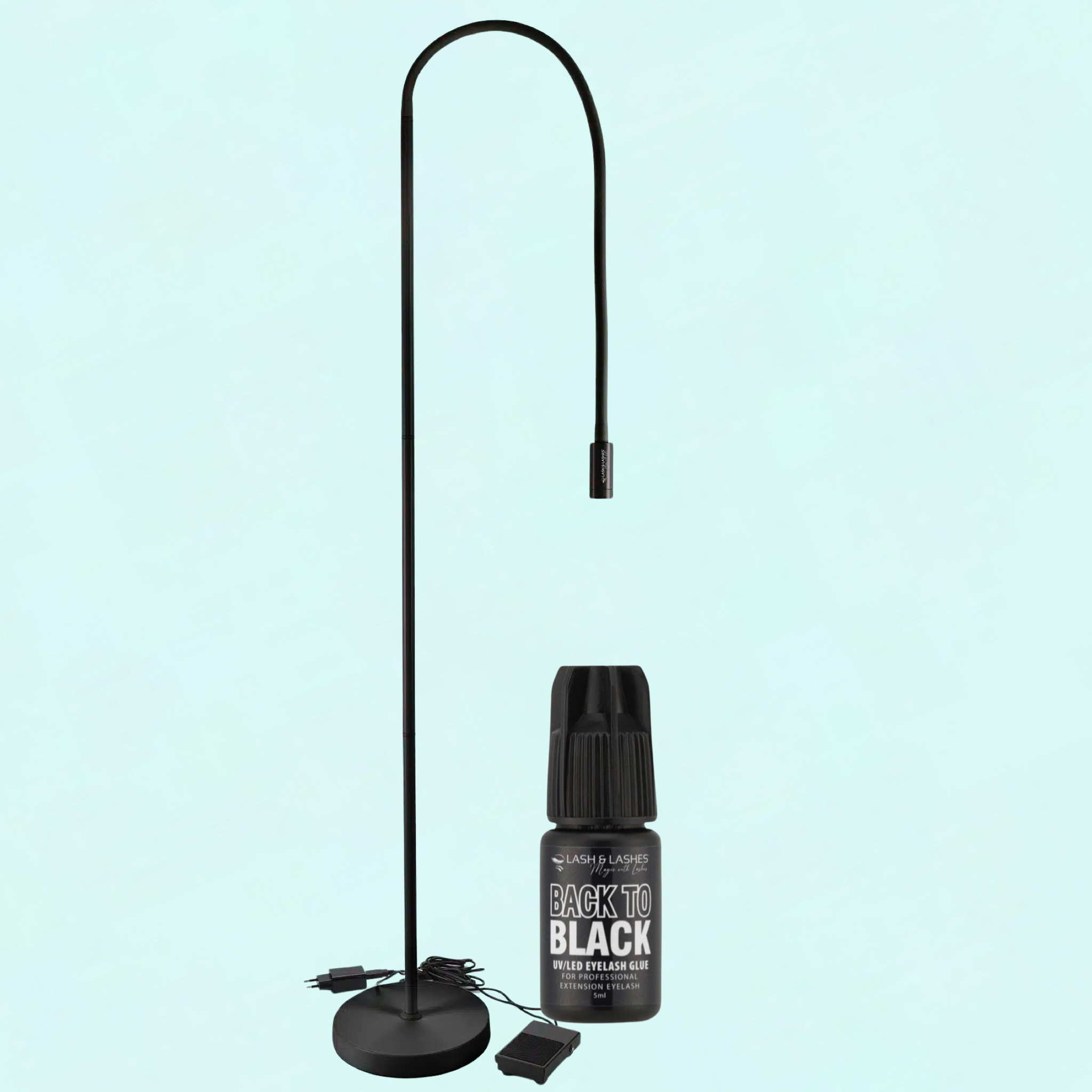 UV / LED Lámpa Szempillaragasztóhoz + Back-To Black UV/LED Fekete Szempillaragasztó